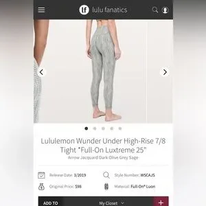 lululemon wunder under leggings 25”