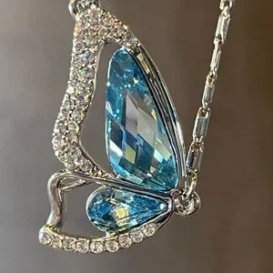 Blue & Silver Crystal Butterfly Wing Necklace