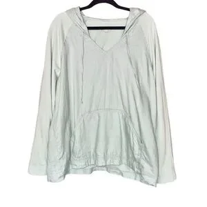 J Jill Linen Cotton Hooded Sweatshirt Light Green Size L Heavy weight Athleisure