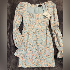 Balloon sleeve mini dress in blue floral by Lavish Alice size Us 4