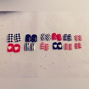 One of the black mail hearts has a slight mark and the back sides of these nails you can see the polish marks because these look hand painted to me. I was told you can reuse these if you use stick on tabs and remove them carefully.