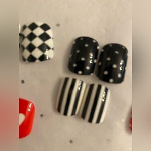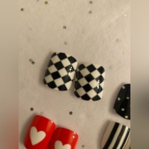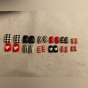 New ❤️ Queen Of Hearts ❤️ Red, Black & White Manicure Press Pop On Nails