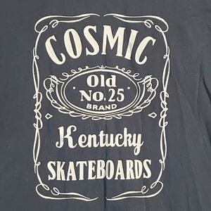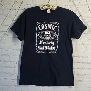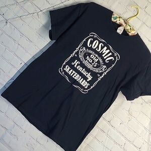 Y2K Cosmic Skateboards Louisville Kentucky Jack Daniel's Black Tee Tshirt Sz M