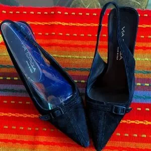 Black Slingback shoes from Via Spiga. Pointed toe, but not to the point it hurts your toes. Very classy style.