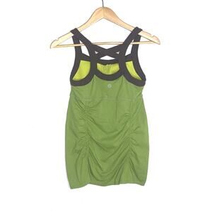 Athleta Scrunch Tank Cami Top Small. Green with brown, built in bra, 46% nylon 45% polyester 9% spandex, normal wash wear