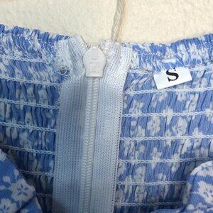 SHEIN Allover Blue & White Floral Print Ruched Bust Ruffle Hem Cami Dress S