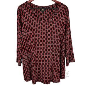 NEW NWT JM Collection Plus Size 2X Black Pink Stretchy Soft Blouse Shirt Top