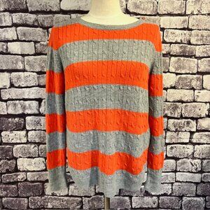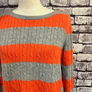 Talbots Orange & Gray Cable Knit Pullover Sweater Size L