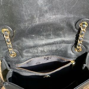 TORY BURCH Savannah Convertible Shoulder Bag - Black with Gold Chain