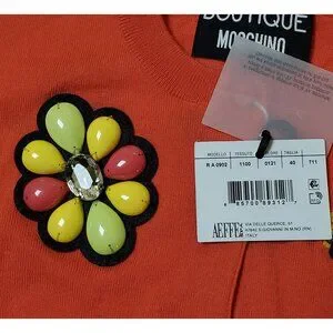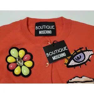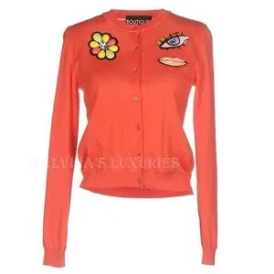 BOUTIQUE MOSCHINO SWEATER SEQUIN CRYSTAL PATCHES PINK WOOL CARDIGAN sz 40 6
