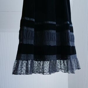 Slink soft 82% rayon 18% silk, invisible side zipper, sweet semisheer pleated silk stripe and polka dot lace ruffle trim, fully lined