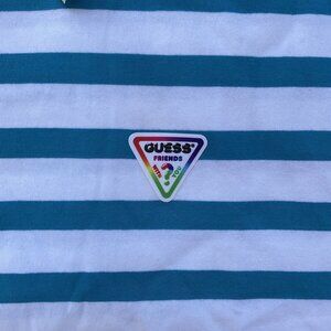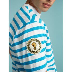 Guess Men’s FriendsWithYou Stripes T-Shirt Sort Sleeves Blue/White Size L