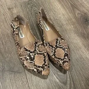 Steve Madden Studded Pointed Toe Loafer in Brown Snakeskin pattern size 7