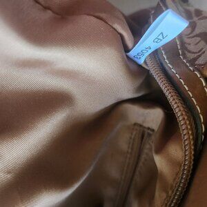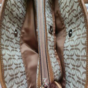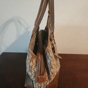 FOSSIL women Handbag Beige Canvas Logo print/Leather 13"x9"x4.5" 2 handles