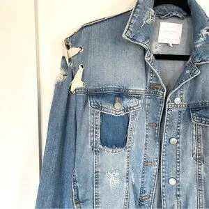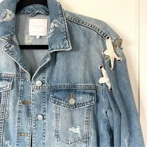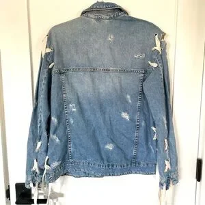 Zara Distressed Lace Up Denim Jacket