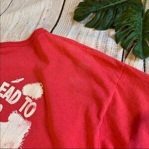Good Condition— has some stains, color fading and holes under right arm. This shirt is from 1997.