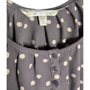 This fashionable Lauren Conrad dress comes in a medium size and features a stylish gray polka dot pattern. The dress has a cap sleeve type and a ruffled neck accent. It is a knee-length fit and flare A-line sundress with pockets that is perfect for any occasion.