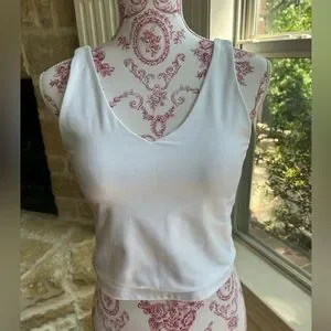 White sleeveless crop top. From the Soft A & F Collection. Double lined so not sheer at all. Very very soft. Great for layering or worn alone. Size Small.