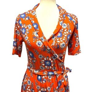 Boden Lavina Jersey Wrap in Papaya Wildflower Prairie Dress Women 6 Petite