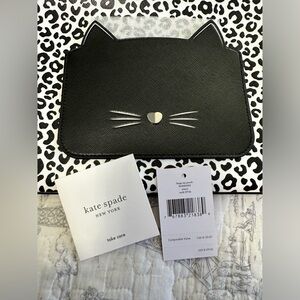 Kate Spade Meow Cat Large Zip Pouch nwt