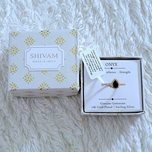 Brand new in box Shivam pear🍐shaped black🖤 onyx gold💛 ring💍