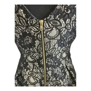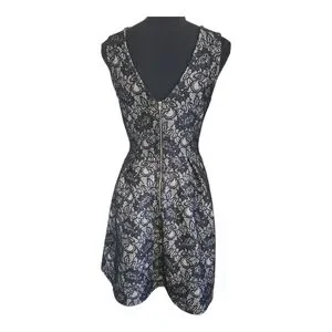 UNBRANDED sleeveless fit & flare lace mini dress cream black size small