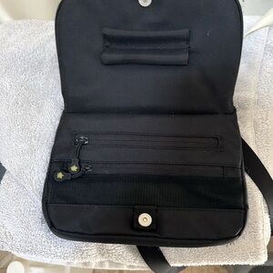 Adorable little bag lots of storage I used it on a trip Love it but have too many bags it’s 9x6