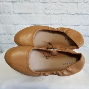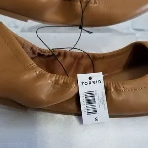 Torrid Scrunch Ballet Flats Shoes Size 8 Tan Cognac Brown Wide Width Neutral New