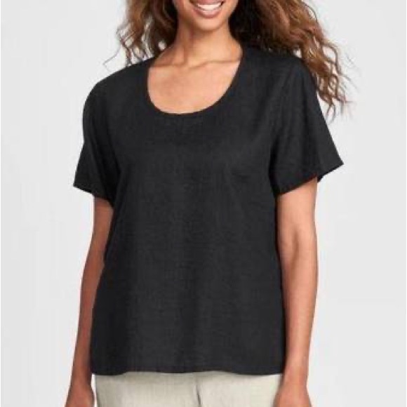 Gorgeous Flax 100% linen scoop neck top. Oversized Lagenlook. The color is a dark charcoal gray. I washed and hung to dry with minimal wrinkling. Hi-lo hem. Cute summer top in excellent preloved condition.