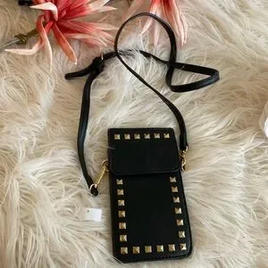 Never used, leather case with gold studs on front, enough space for phone, wallet, 🆔 or something else like cigarettes or lighters or pills, measurements 7,5"/4", adjustable straps