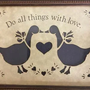 VINTAGE Country Cuts Framed Folk Art Love Ducks