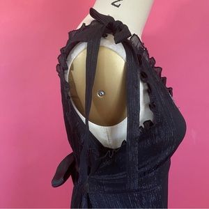 Vintage 90s/Y2K Vampire GothLite Ruffled Empire Waist Shimmery Tie Back Tank Top ~M
