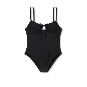 Juniors' sexy Shirred Underwire One Piece Swimsuit Xhilaration Black nwt