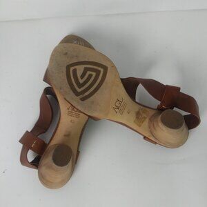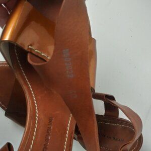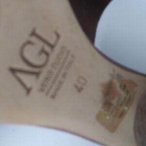 AGL T-Strap Slingback Handmade Sandals Brown Copper Patent Stacked Heel Size 40