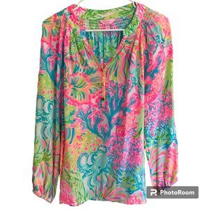 Lilly Pulitzer Elsa Silk "Lovers Coral" Top Women's Size Medium