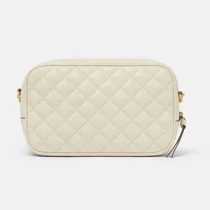 This is an authentic VERSACE Nappa Quilted Medusa Camera Bag in Beige. This luxurious shoulder bag is crafted of soft lambskin leather in beige. The bag features a polished gold chain-link and leather shoulder strap with a medusa on the front. This opens to a black fabric interior with a flat pocket.