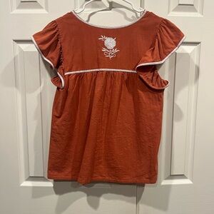 J Marie brand embroidered burnt orange and white blouse