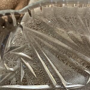 Oval cut glass serving dish 13” 6.50” 2.75” vintage perfect condition air bubble