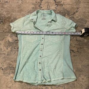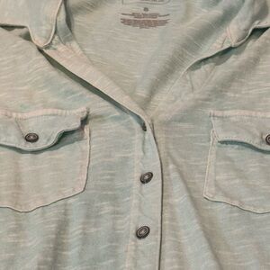 Vintage looking Sonoma shirt in mint green with white. 2 pockets on chest.