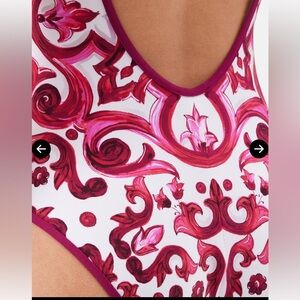 NWT Dolce & Gabbana Majolica print swimsuit in red/magenta/pink and white.