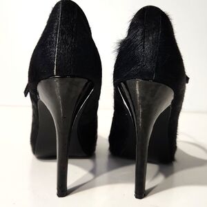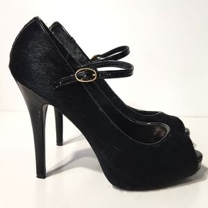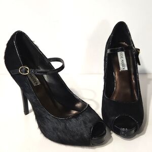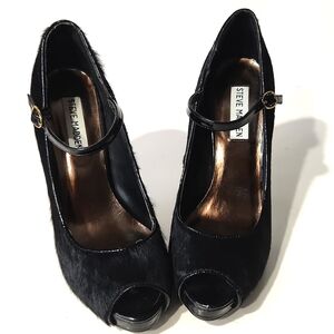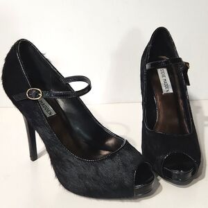 Steve Madden Laveda Black Leather Calf Hair Peep Toe Pumps Size 8M EUC!