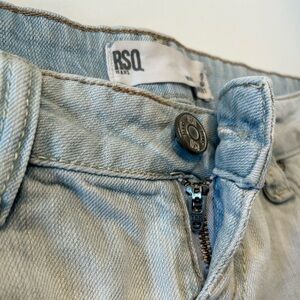 Traditional five pocket styling. Cuff with raw unfinished seam at leg openings. RSQ label at back of waist. Zip fly. Button waist. Approx rise: 7"(18cm). Approx inseam: 2.5"(6cm). Machine wash. Imported. Model is wearing a size 3.