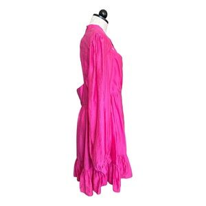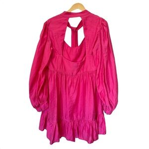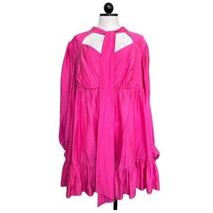 tags: Pink, Dress, women's ASOS Curve, plus size, dramatic, party dress, hot pink, pussybow, blouson sleeves, cut out back, Exposed Back, Open back, daywear, babydoll, mini dress, bright, colorful, bold, feminine, romantic, wedding guest, spring, summer, garden party, statement piece, date night