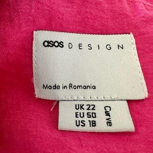 ASOS LUXE Curve Pussybow Cupped Mini Dress Blouson Sleeve Pink Ties In Front Open Back Plus Size 18