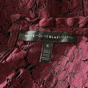 Gorgeous White House Black Market Wine Lace Velvet Short Sleeve Shirt Blouse Top. Size S.