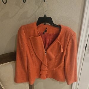 Tahari Orange Blazer size 6 gold zipper form fitting