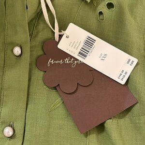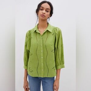 NEW Anthropologie Puff-Sleeve Eyelet Buttondown Forever That Girl Green Size XXS