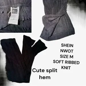 NWOT SHEIN Black Split Hem Soft Ribbed Knit Leggings Size Medium