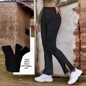 NWOT SHEIN Athletic Pants Black Split Hem Soft Ribbed Knit Leggings Size Medium