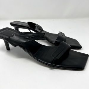 Calvin Klein Vintage Y2K black leather square toe heel sandals